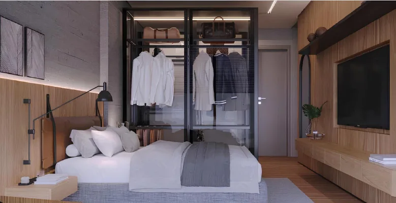 As unidades tipo studio/flat a partir de 254 mil com 25m² (25m² composto de 1 quarto) são perfeitas para solteiros, estudantes e profissionais que buscam praticidade, com espaço ideal para quem deseja conforto sem abrir mão da funcionalidade. Com espaços compactos e bem aproveitados, os studios do Burj Lavie contam com: